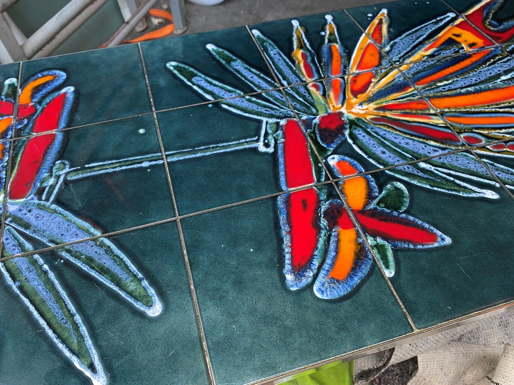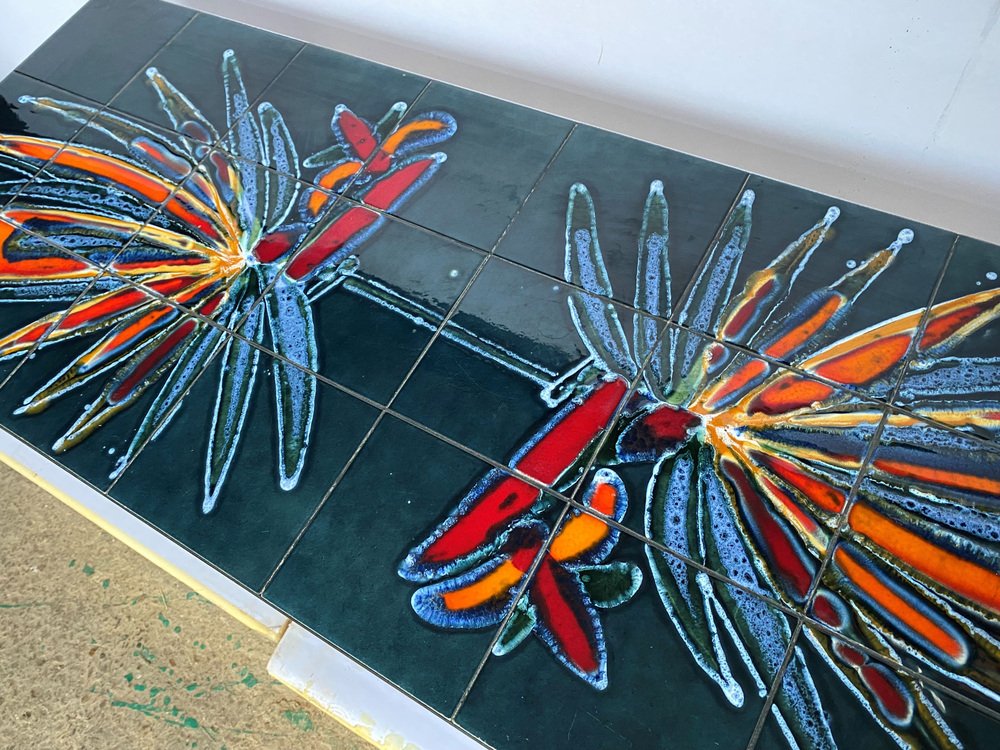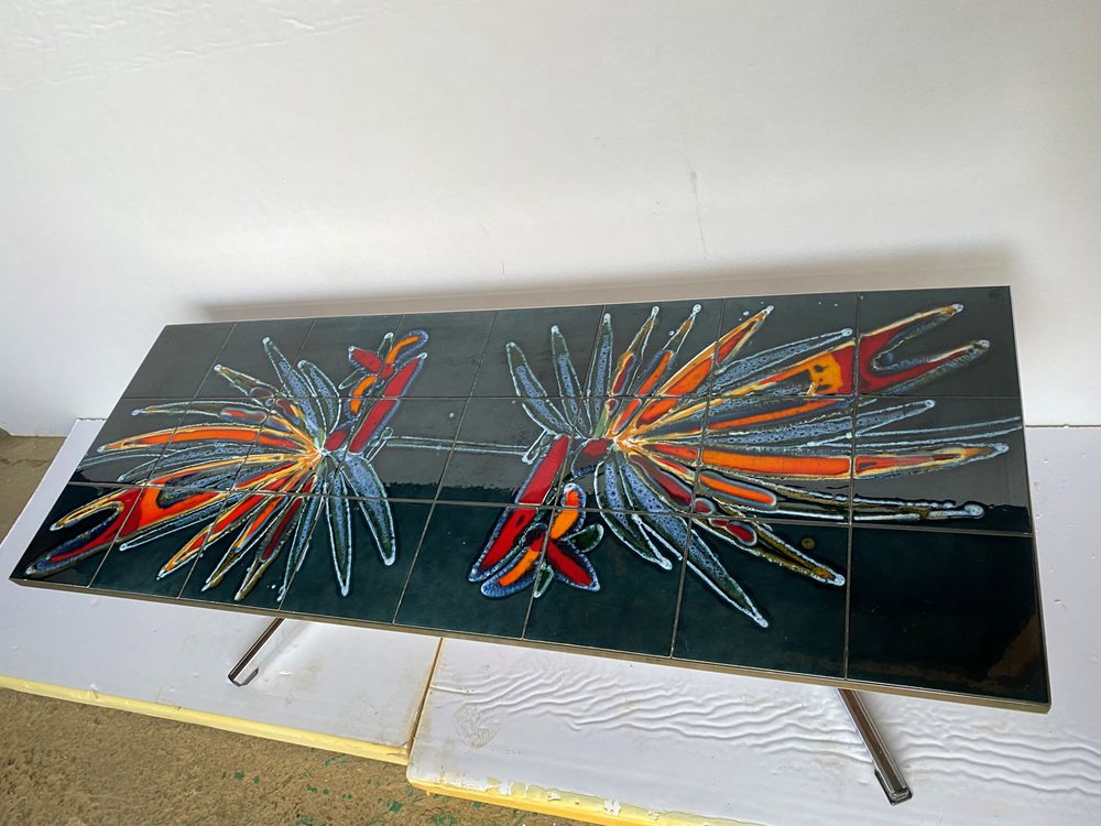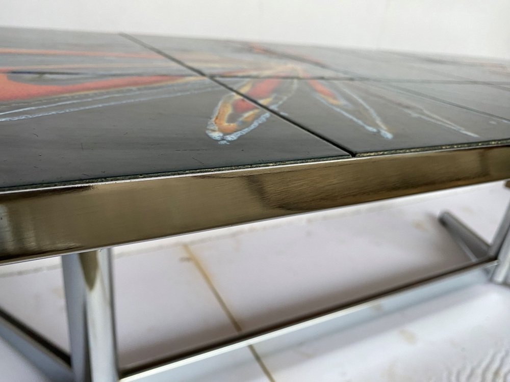 Vintage Couchtisch aus Blauer Keramik & Chromstahl, 1960