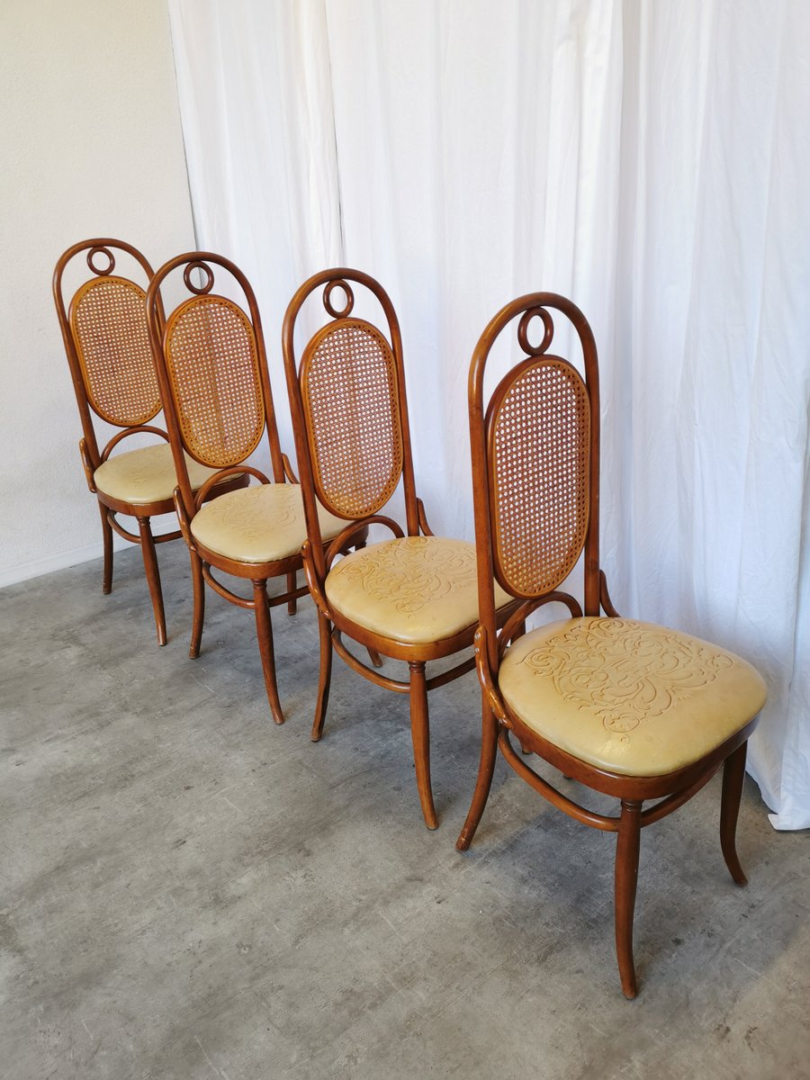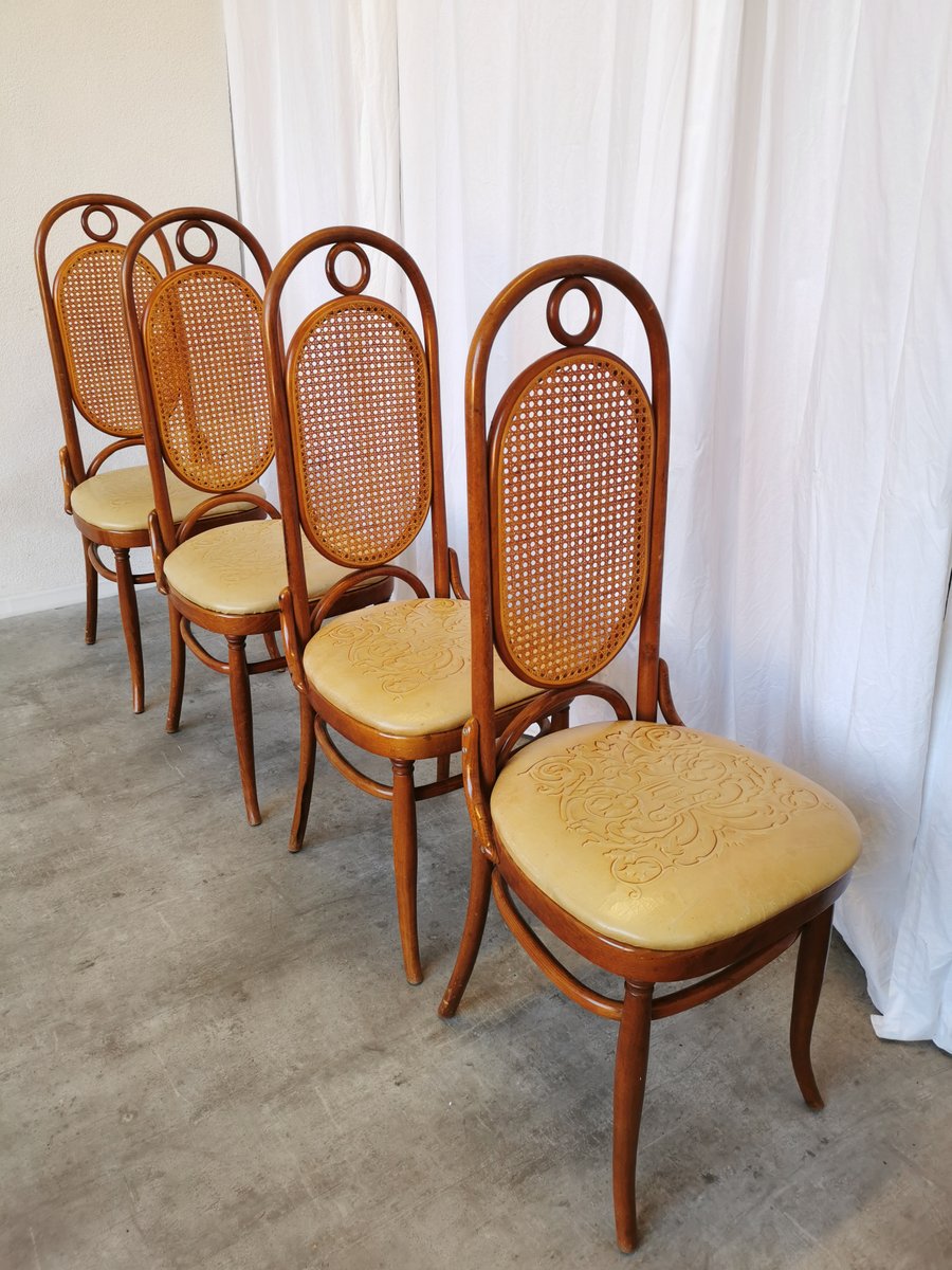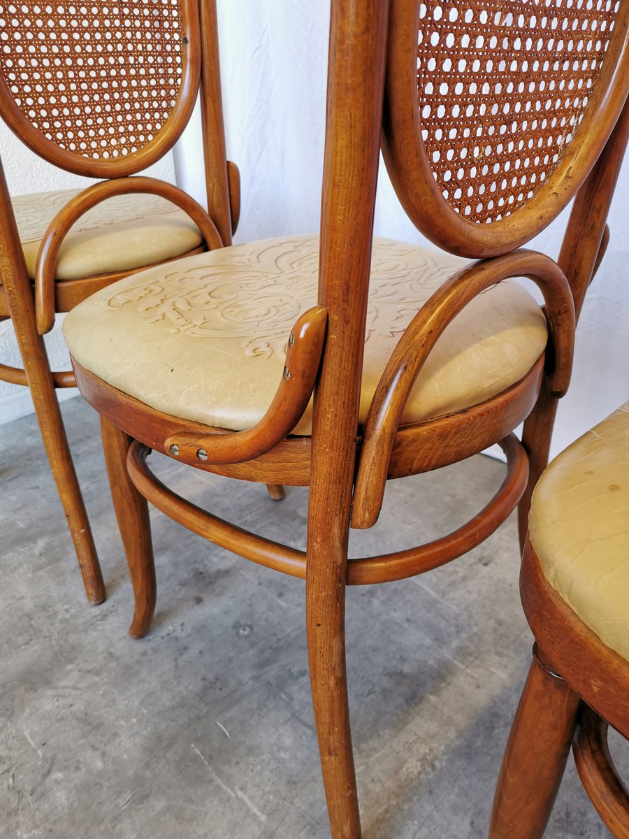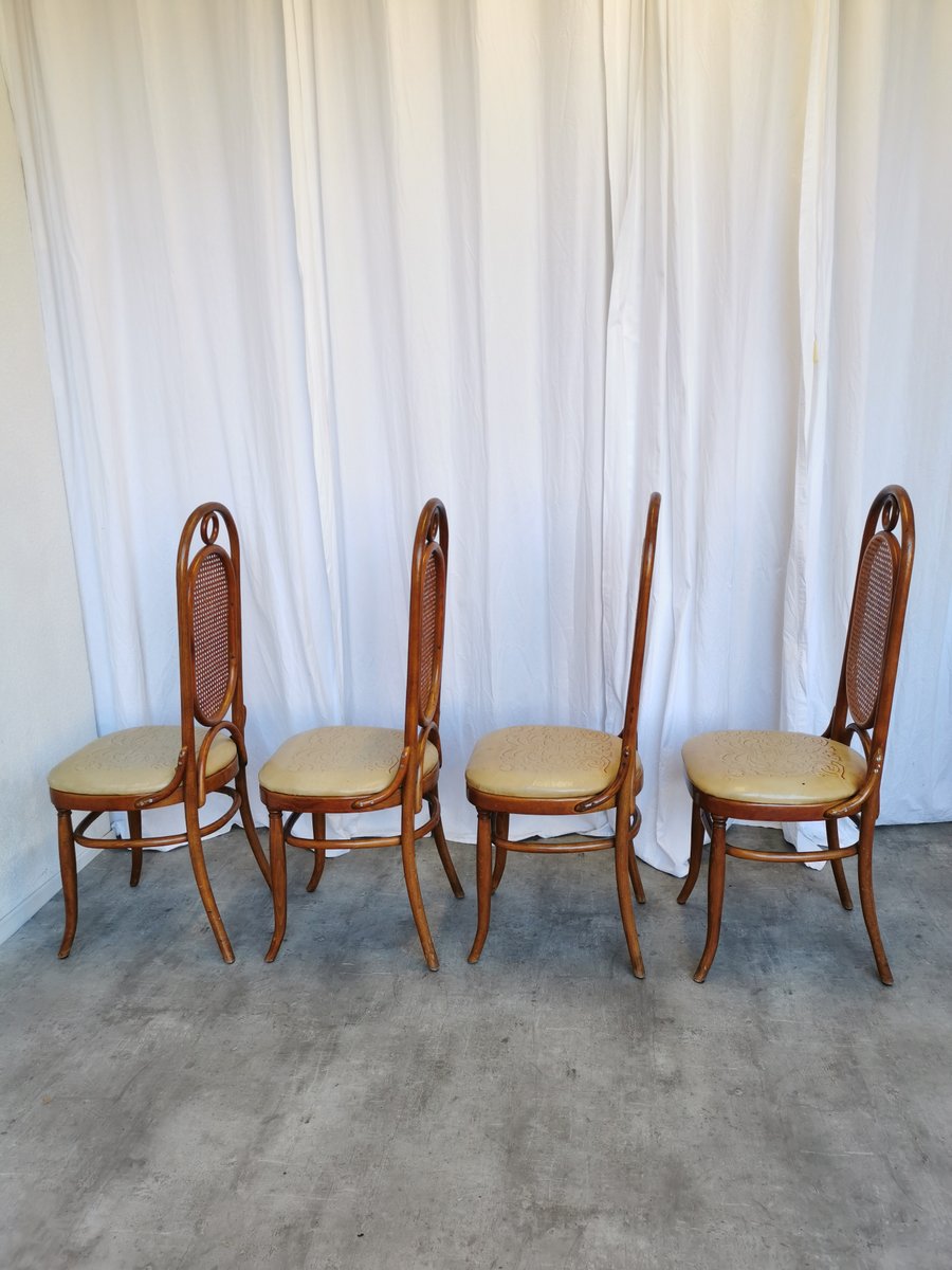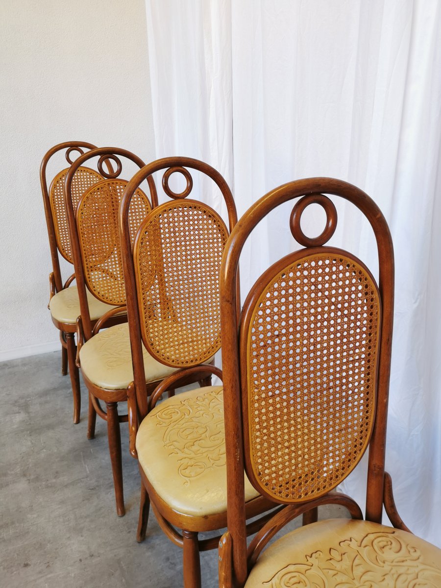 Vintage Esszimmerstühle aus Bugholz mit Ledersitz, 1970er, 4 . Set
