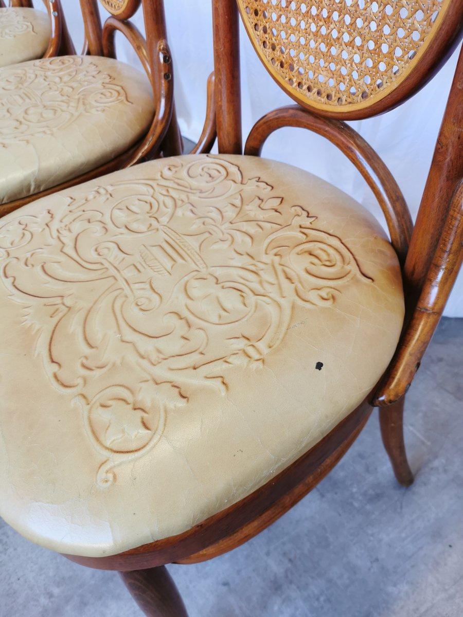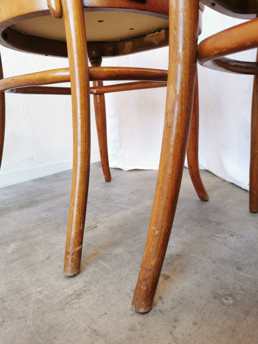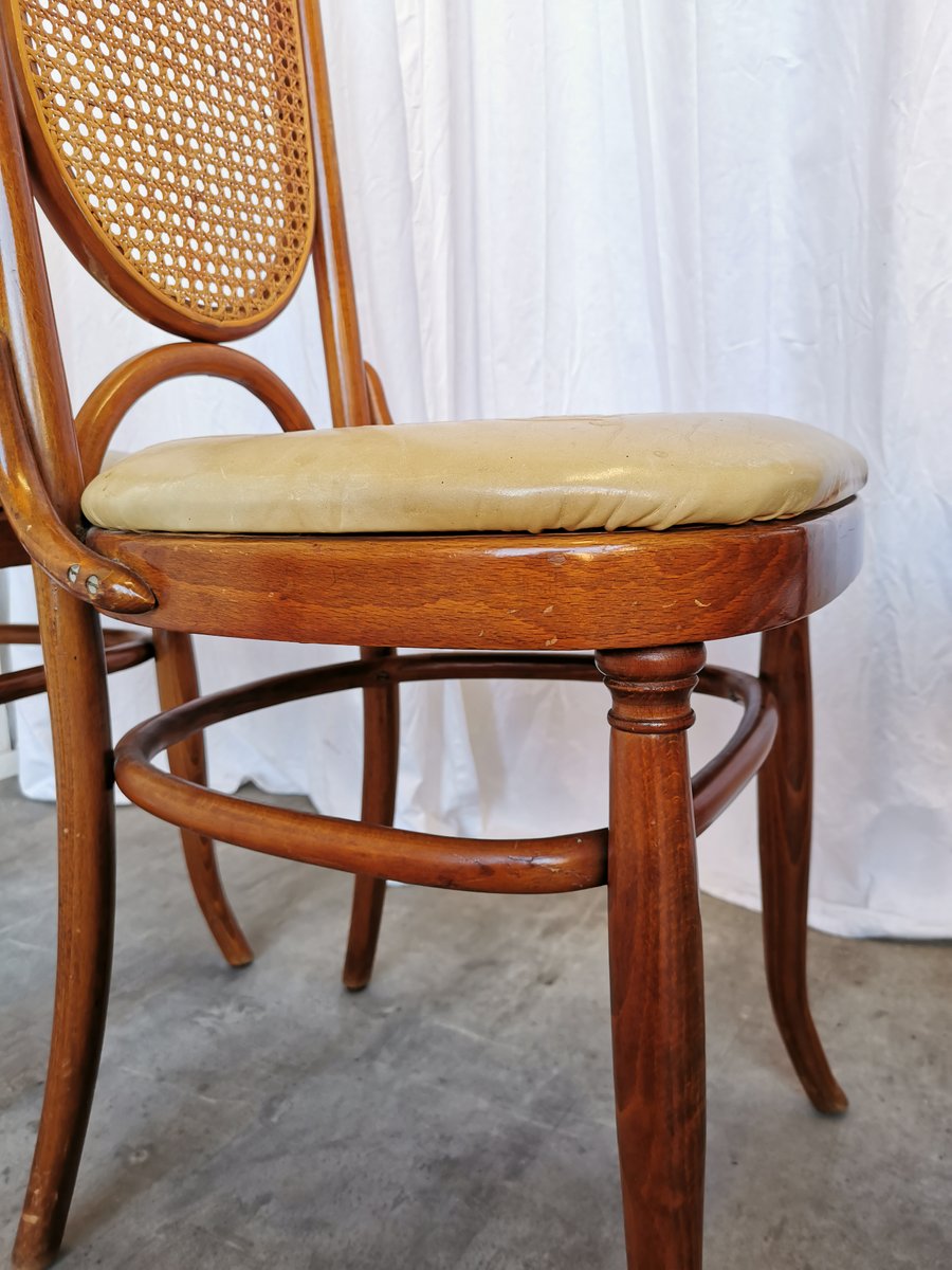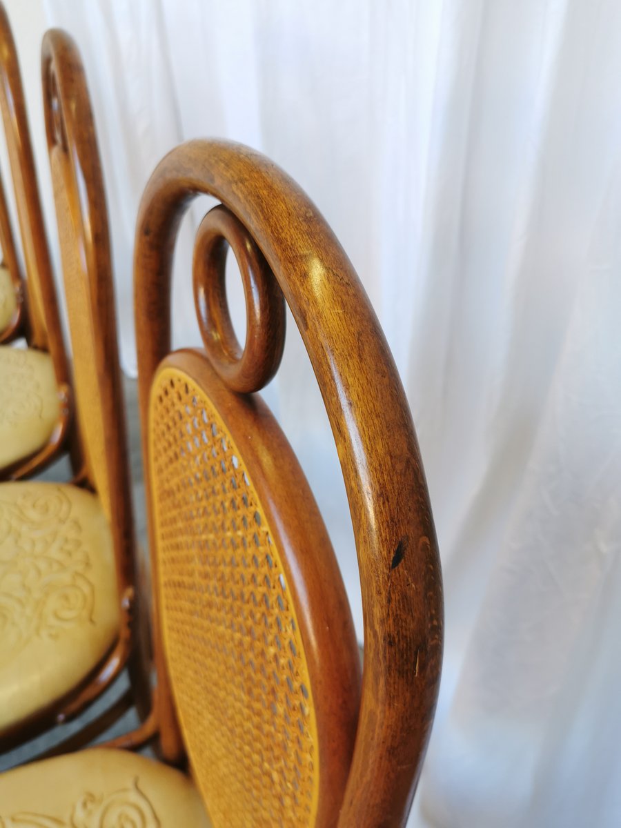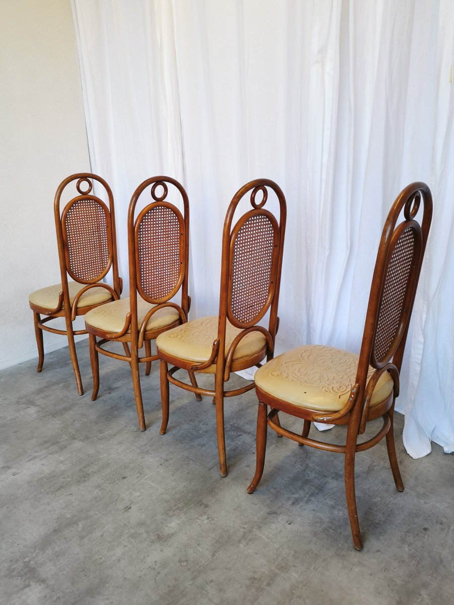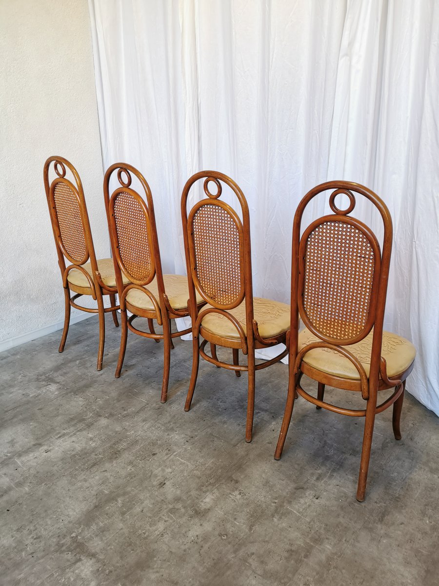 Vintage Esszimmerstühle aus Bugholz mit Ledersitz, 1970er, 4 . Set