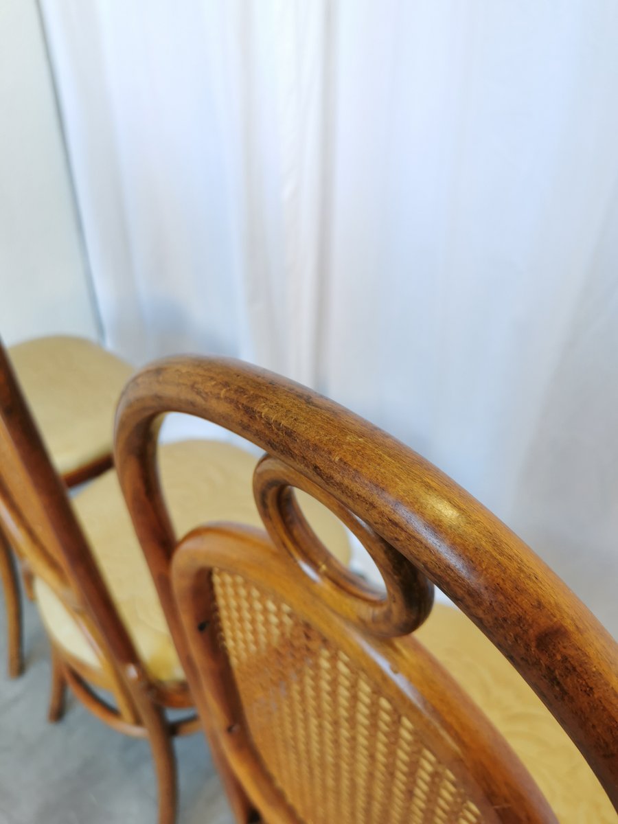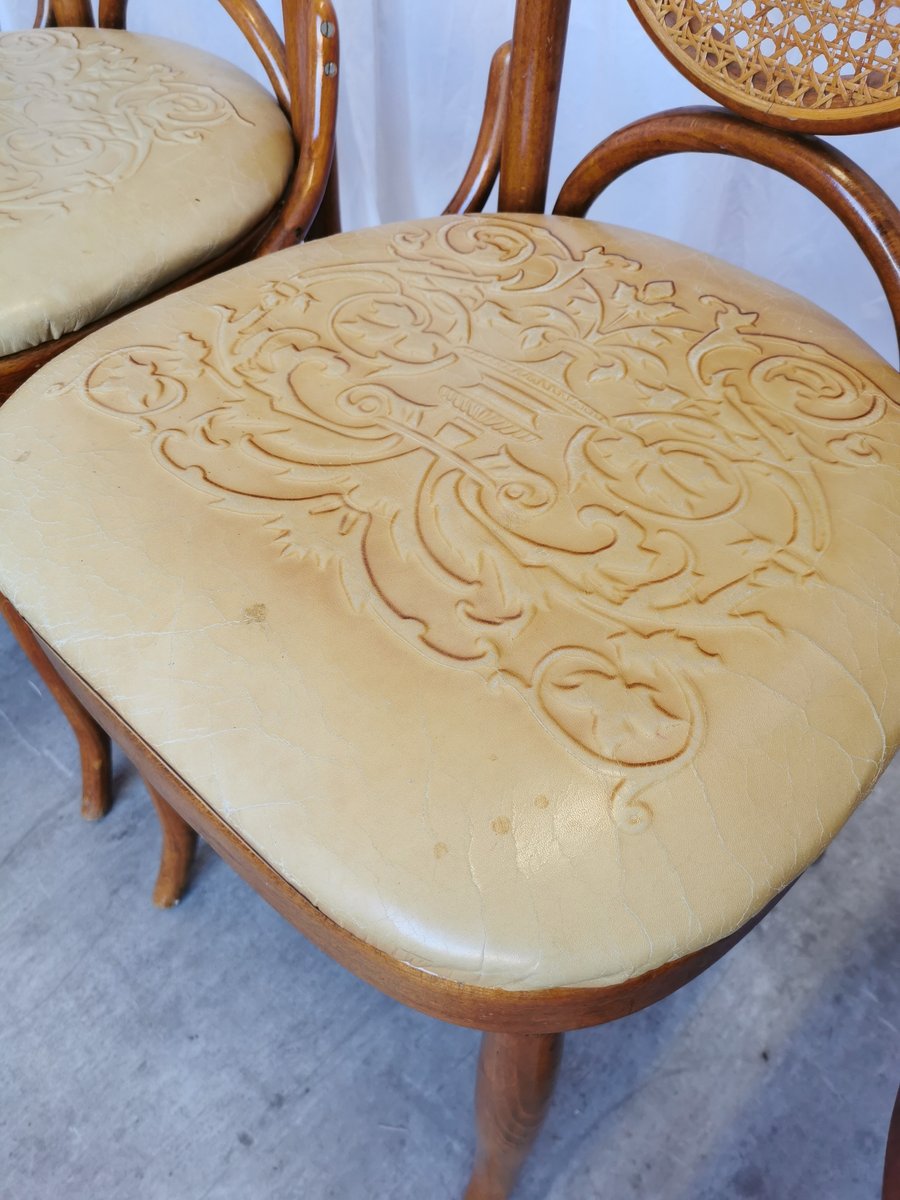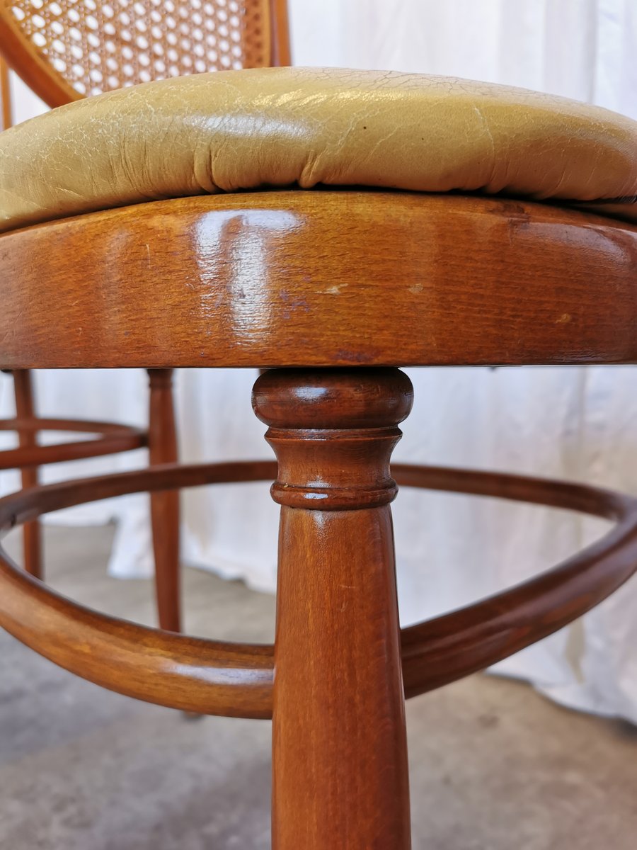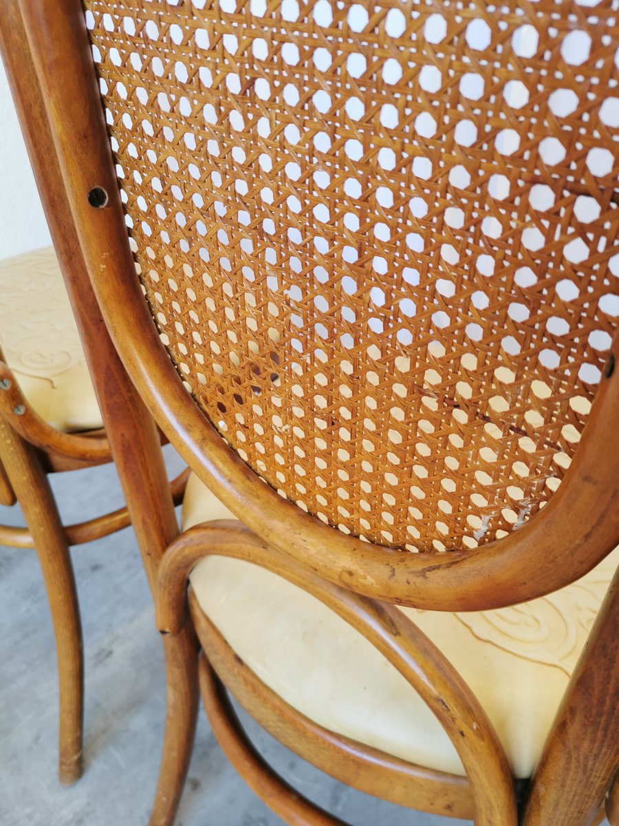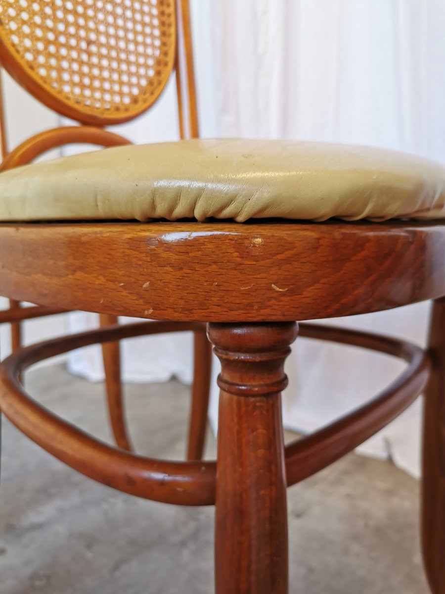 Vintage Esszimmerstühle aus Bugholz mit Ledersitz, 1970er, 4 . Set