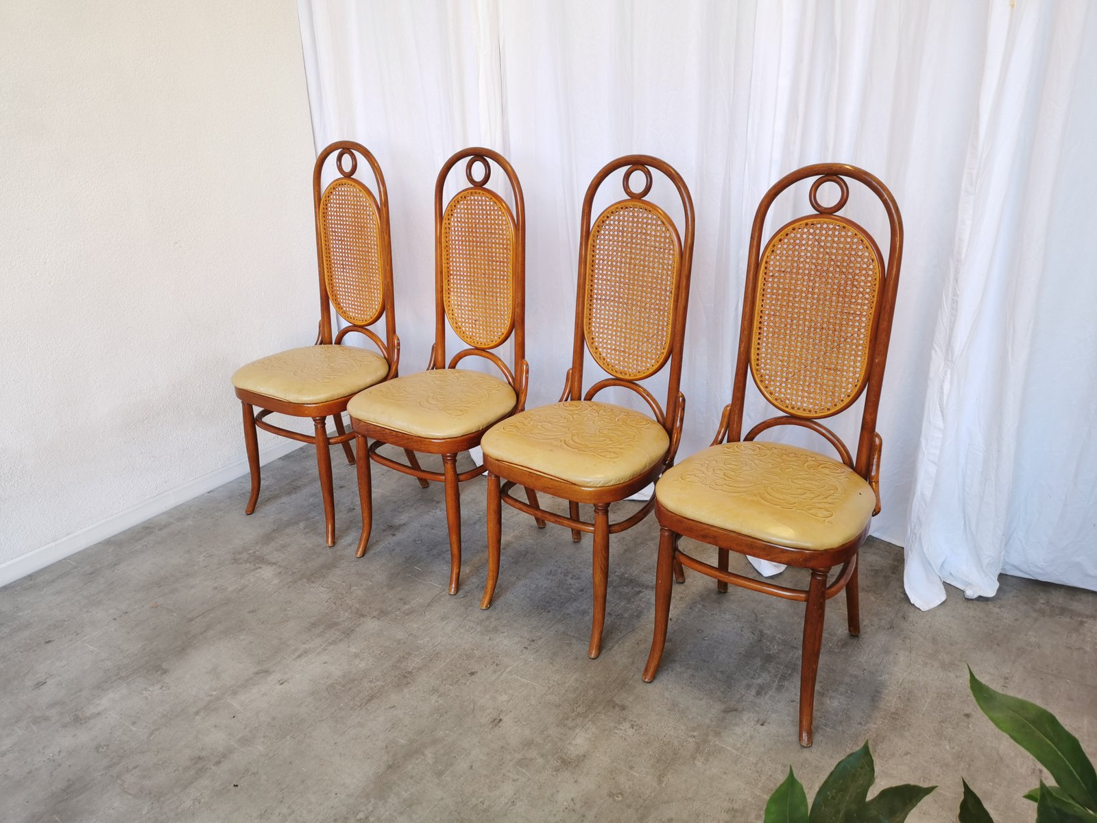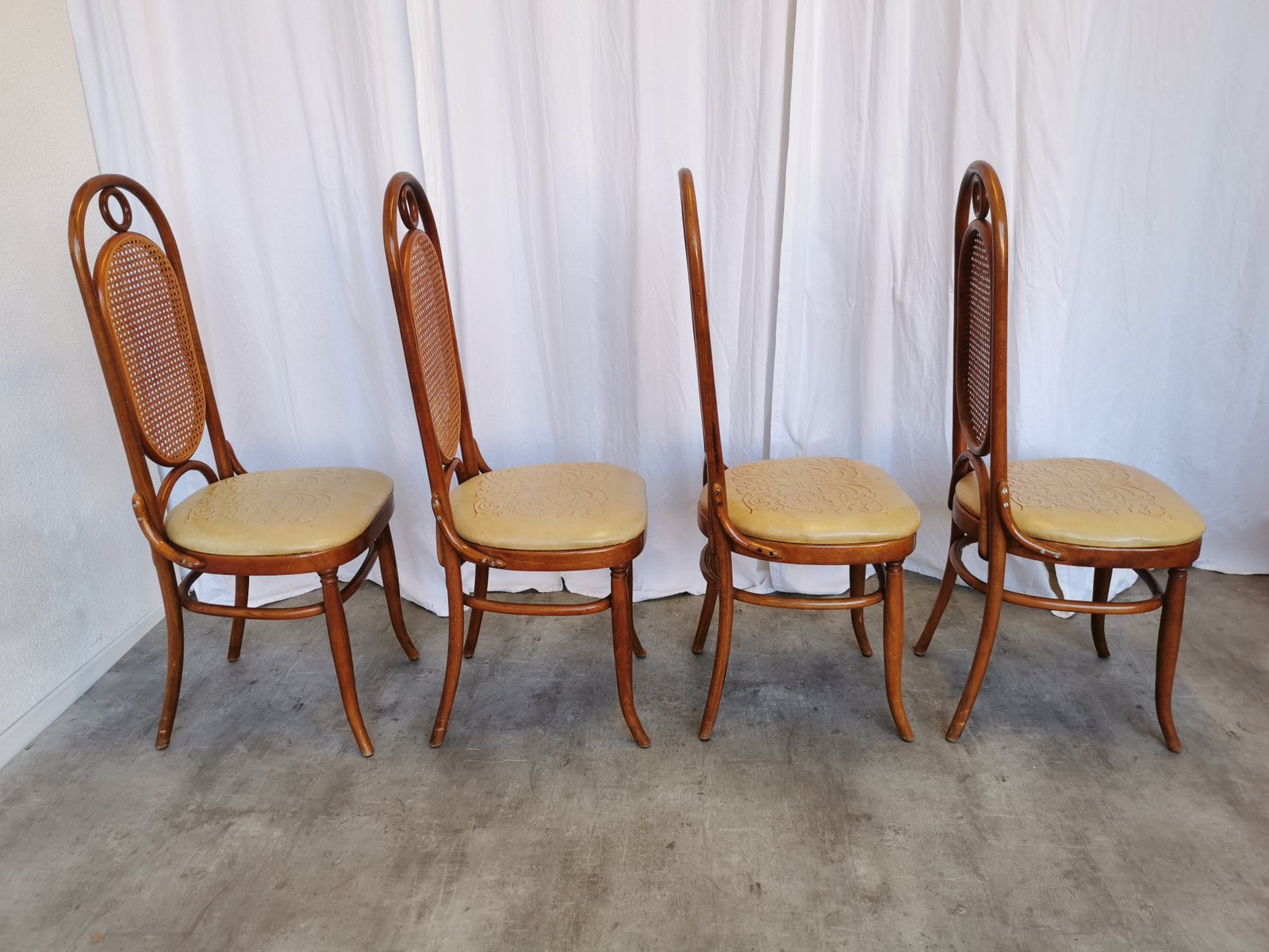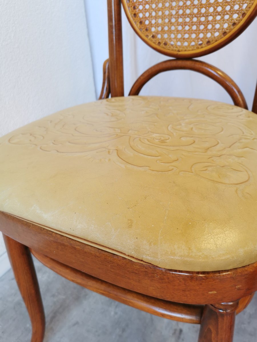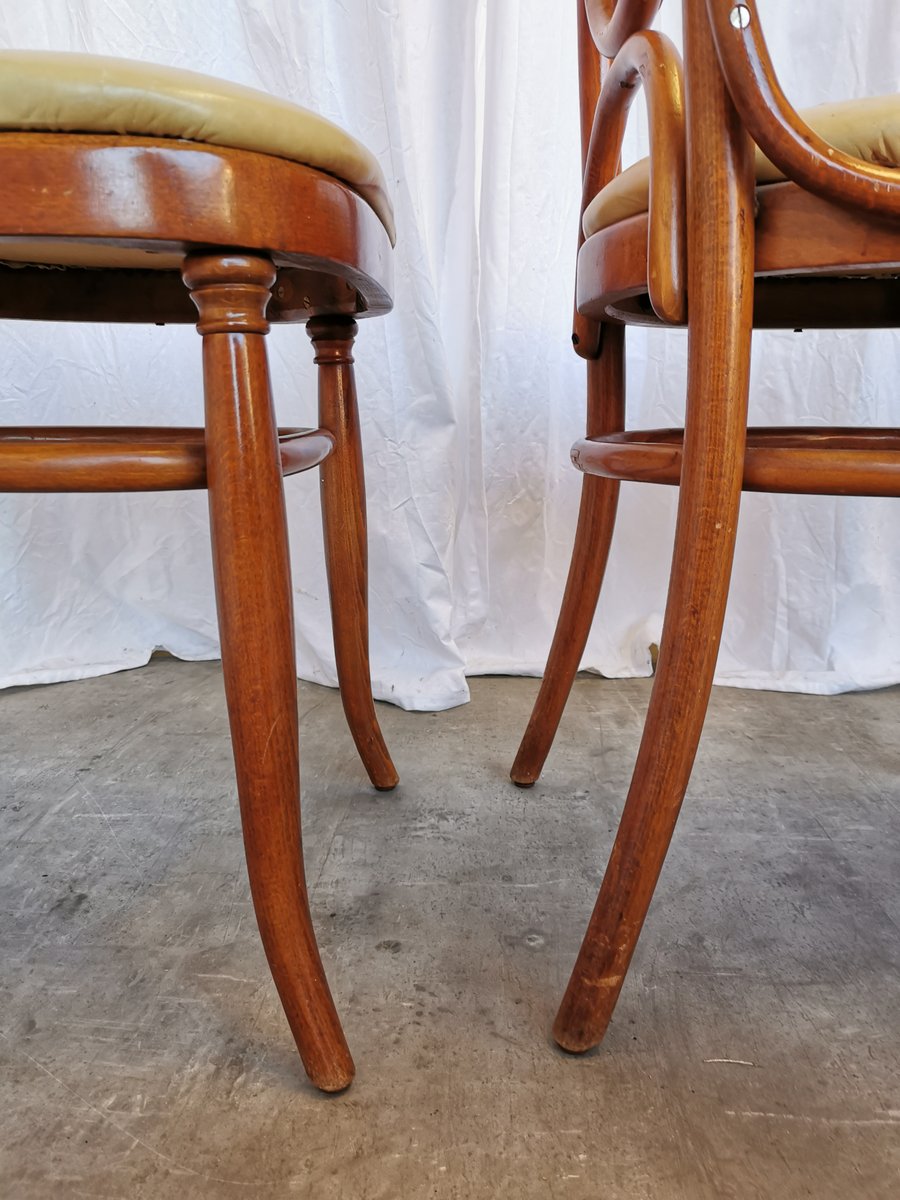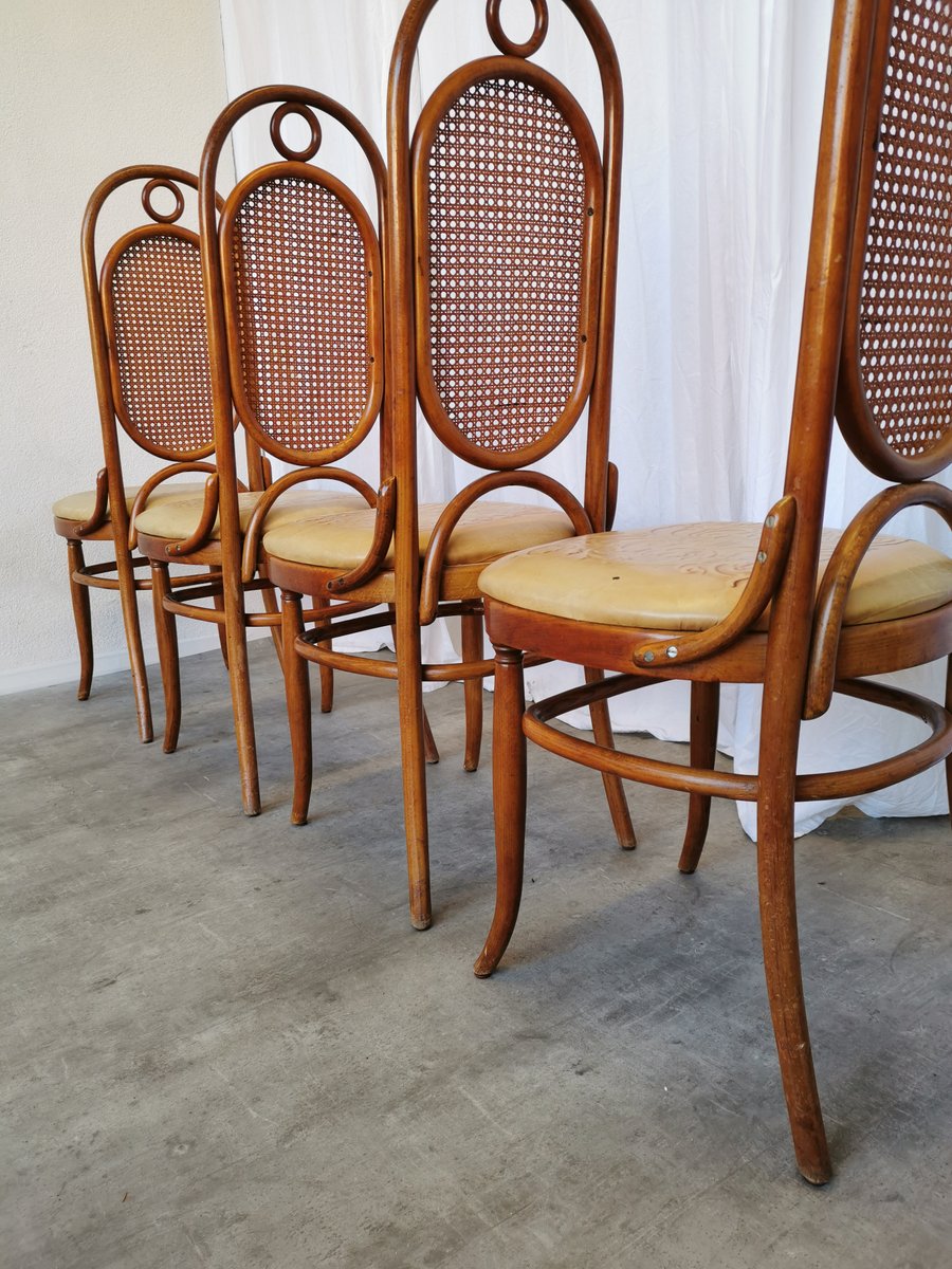 Vintage Esszimmerstühle aus Bugholz mit Ledersitz, 1970er, 4 . Set