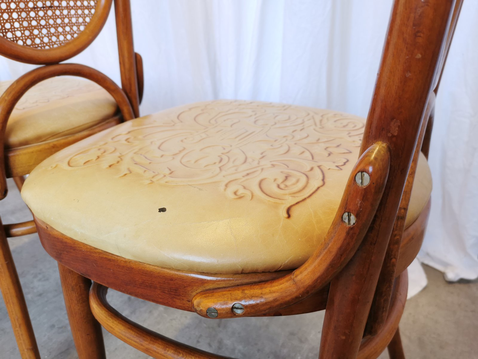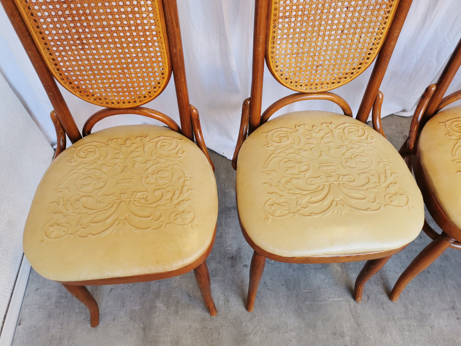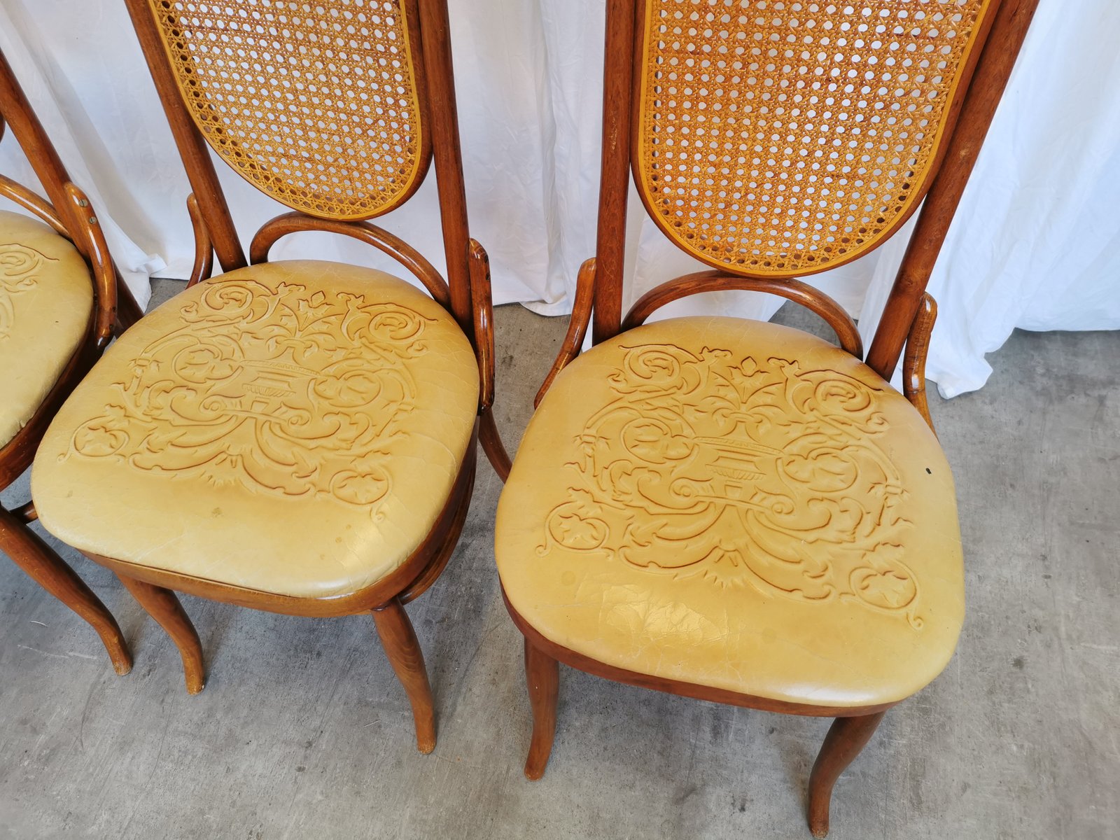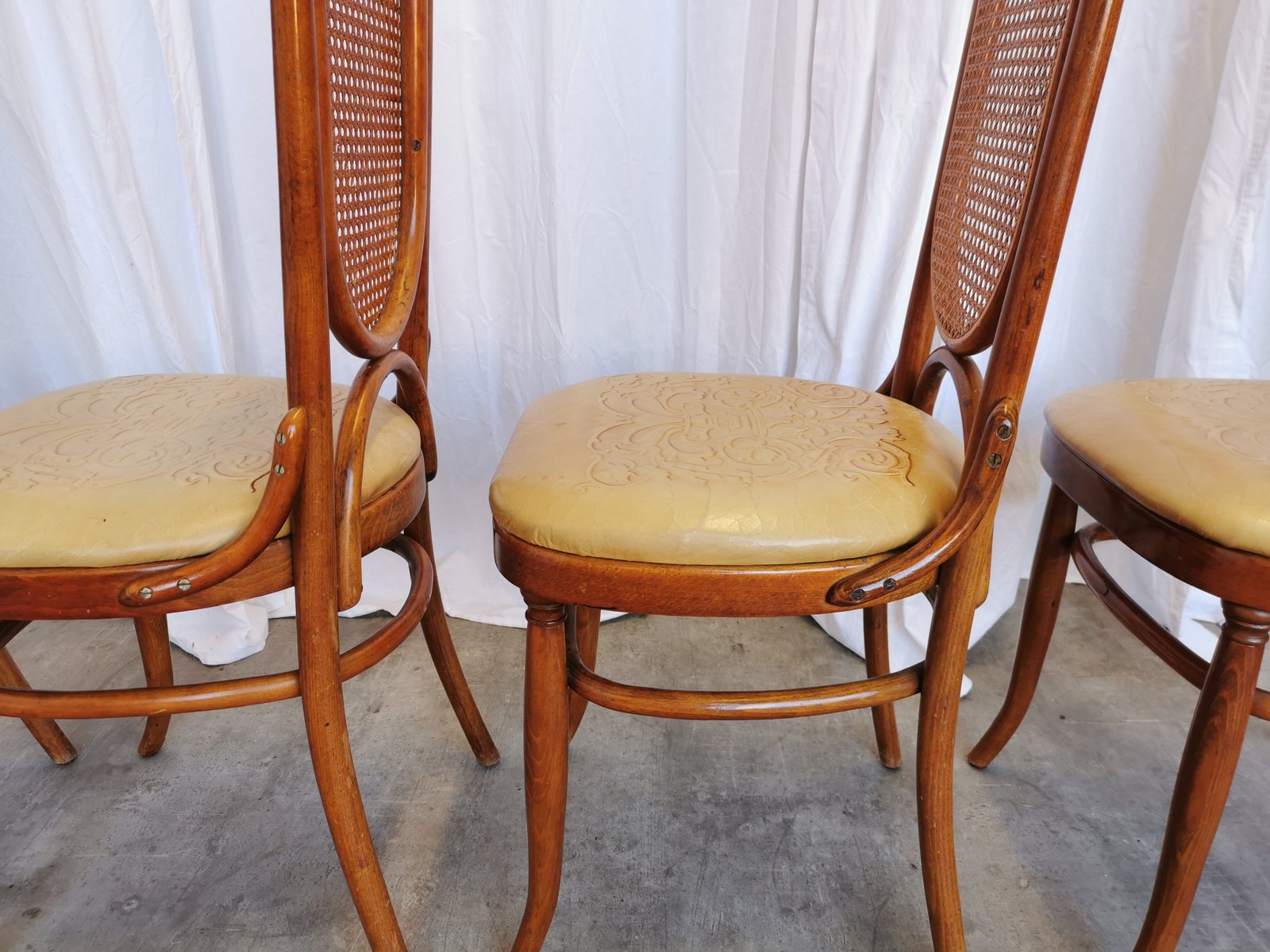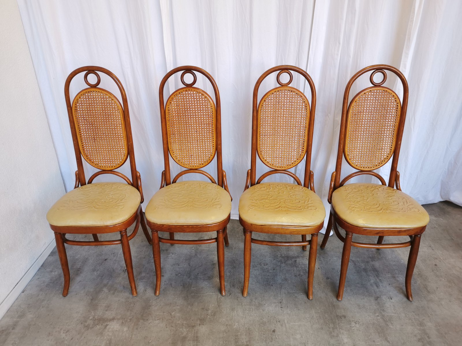 Vintage Esszimmerstühle aus Bugholz mit Ledersitz, 1970er, 4 . Set