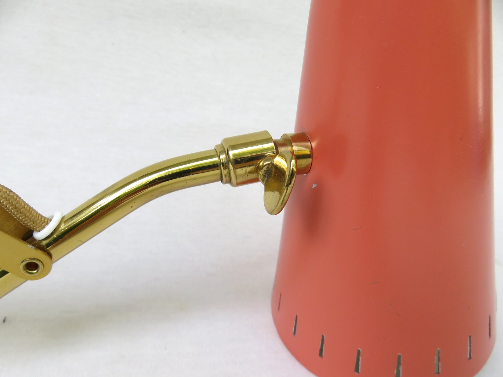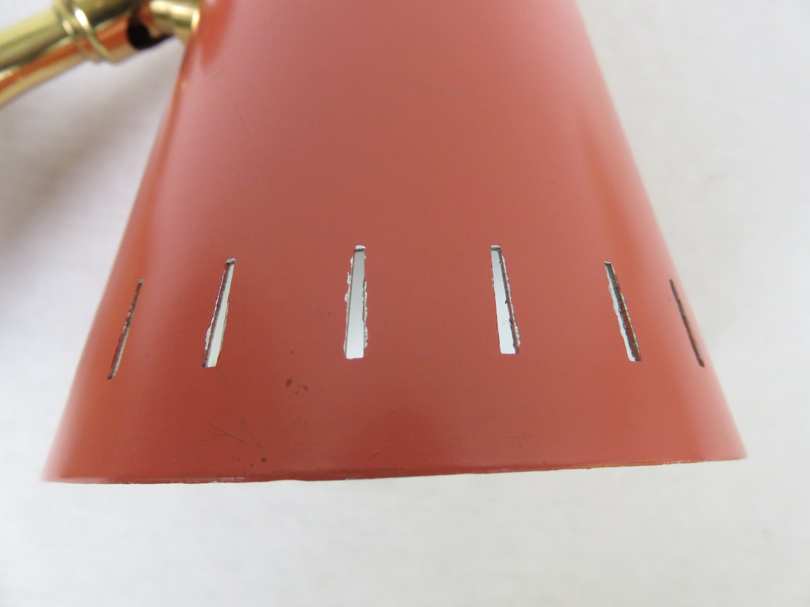 The wall bracket of the coral-colored lamp has a small pressure mark on the side, while the wall bracket of the beige lamp has a hole closed (soldered) from below. The original paintwork shows minor traces of time.