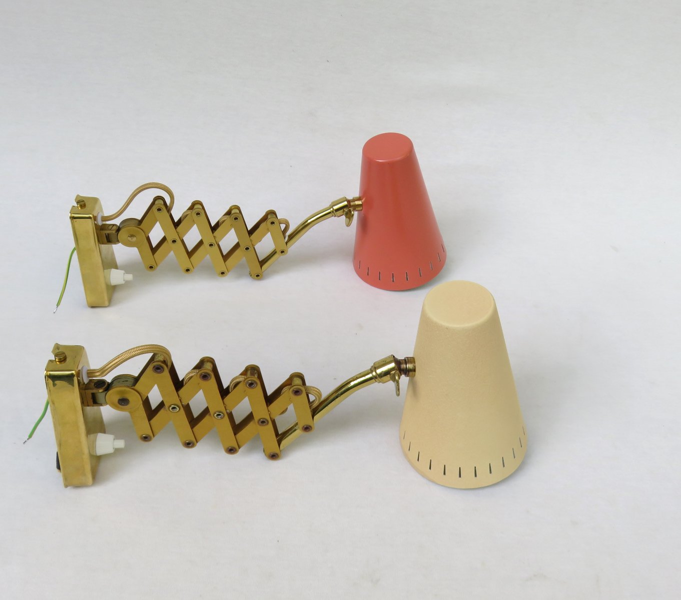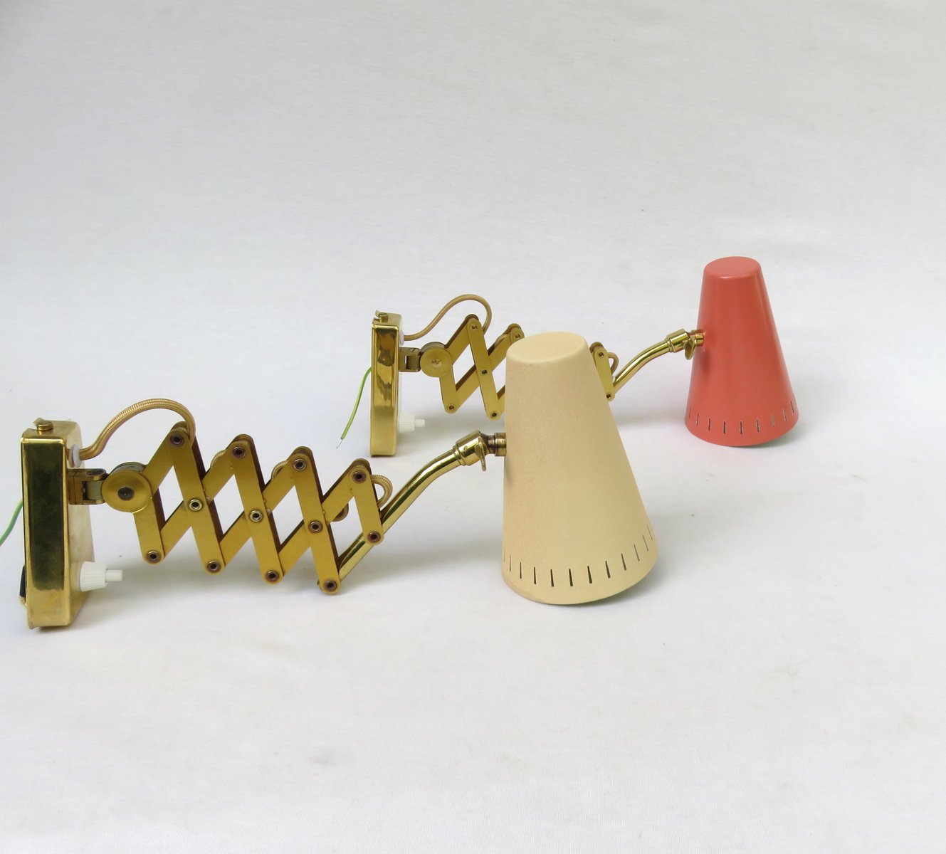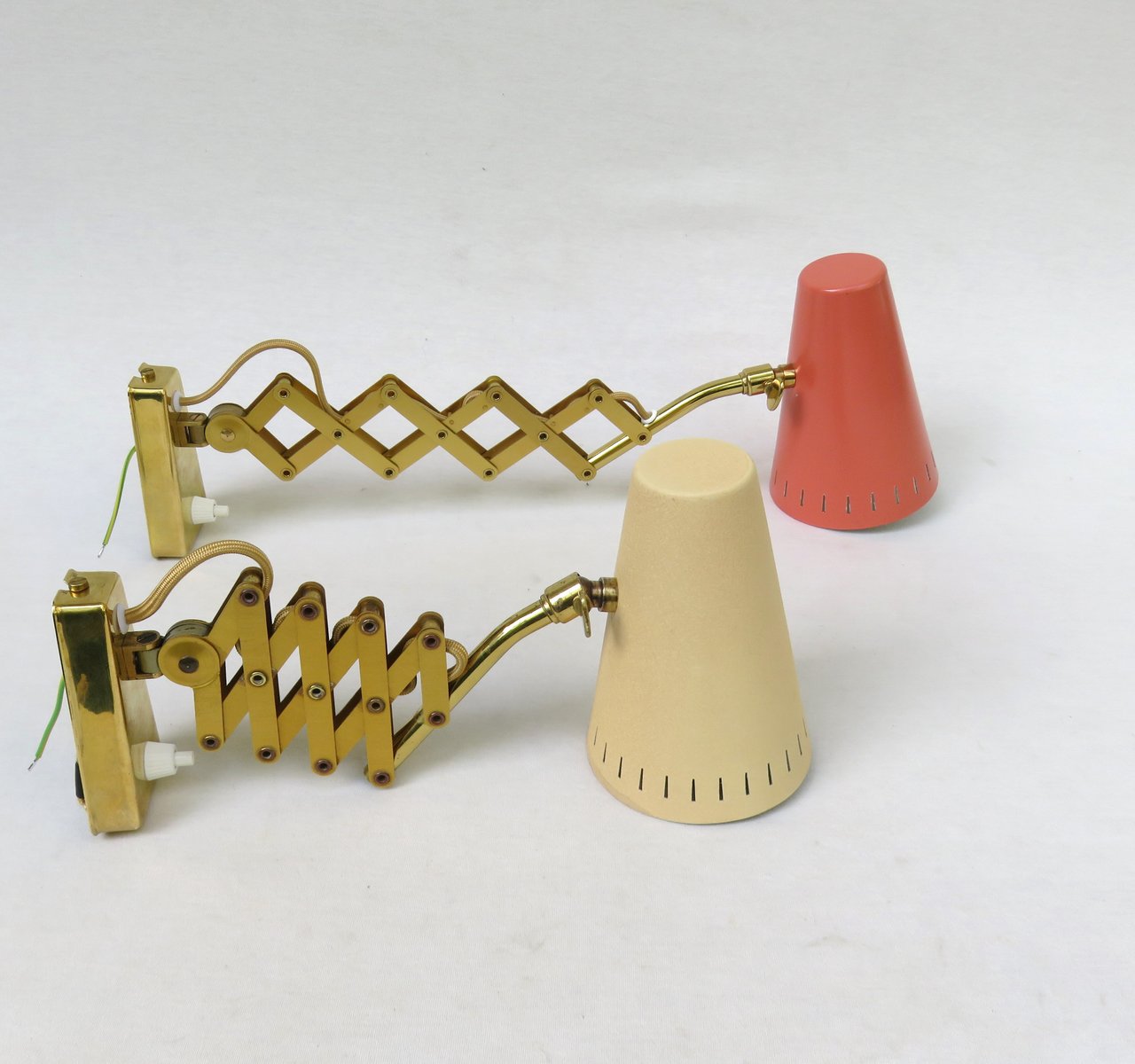 Ein Paar zierliche Scherenleuchten, hergestellt von SIS-Licht in den 50er Jahren.