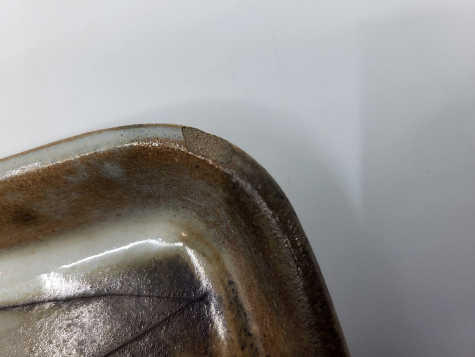 Es misst 15,5 x 14 cm und hat einen kaum sichtbaren Chip, der von seiner Geschichte und seinem Wandel durch die Zeit zeugt. Obwohl die kleine Unvollkommenheit kaum wahrnehmbar ist, schmälert sie nicht den künstlerischen Wert und die visuelle Wirkung dieses großartigen Werks. Jedes Detail, jede Nuance der Glasur trägt dazu bei, eine Geschichte zu erzählen und die Erfahrung derjenigen zu bereichern, die sich die Zeit nehmen, es zu betrachten.