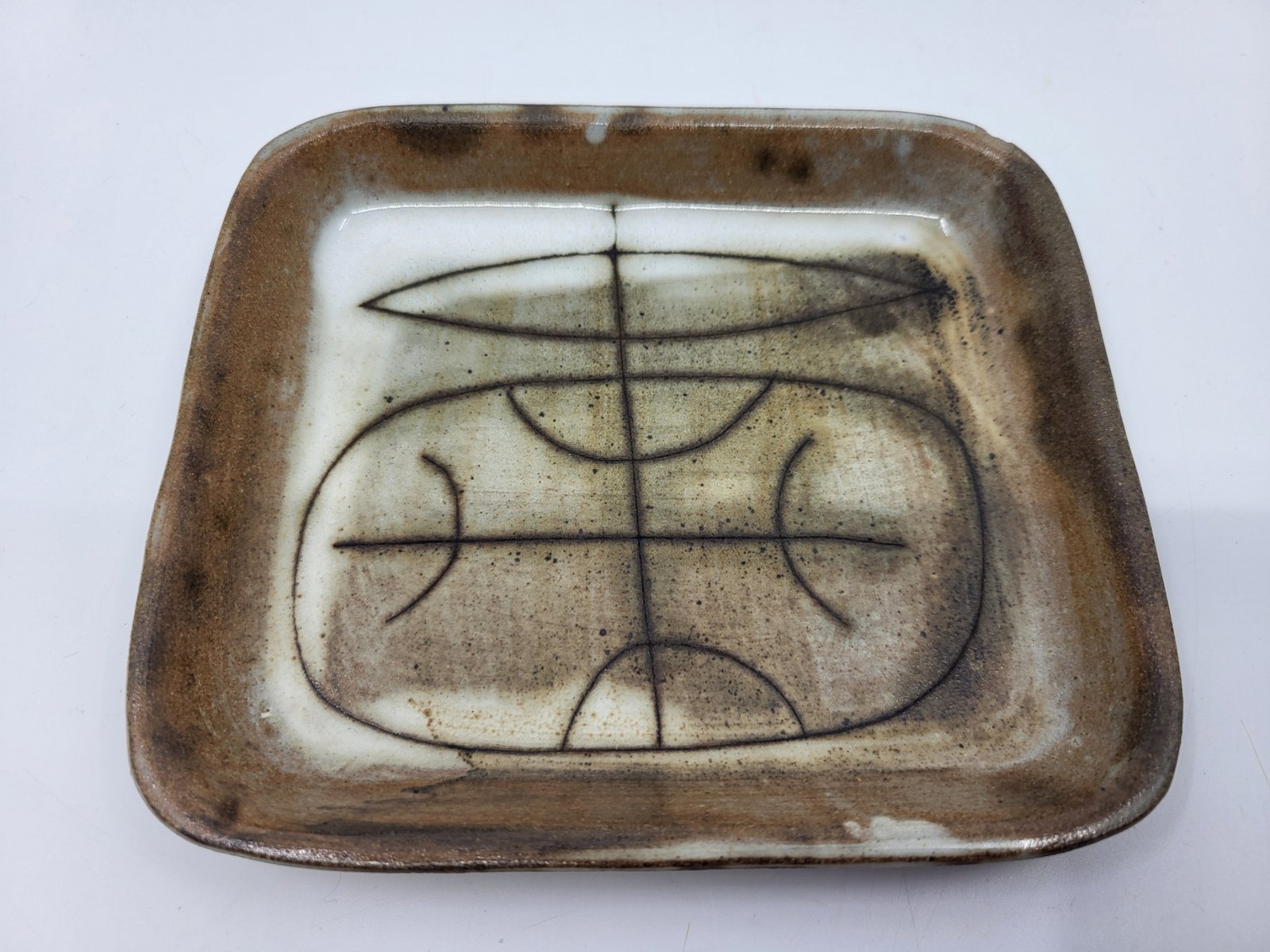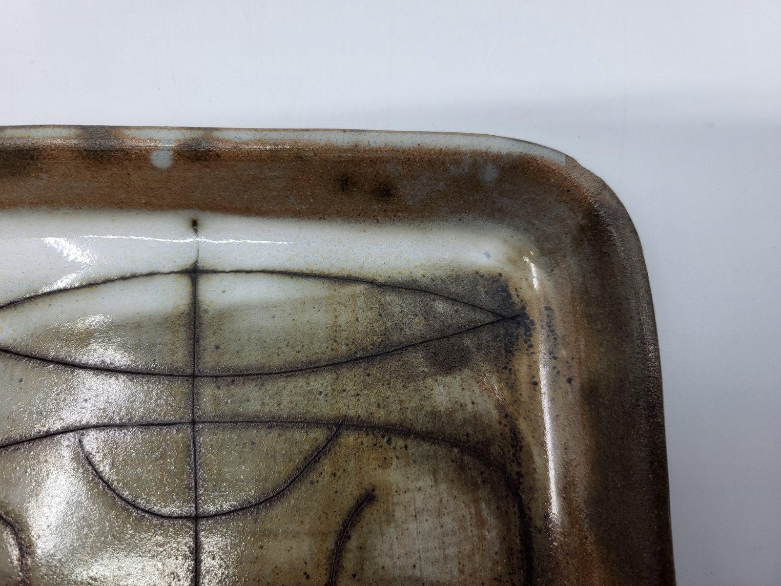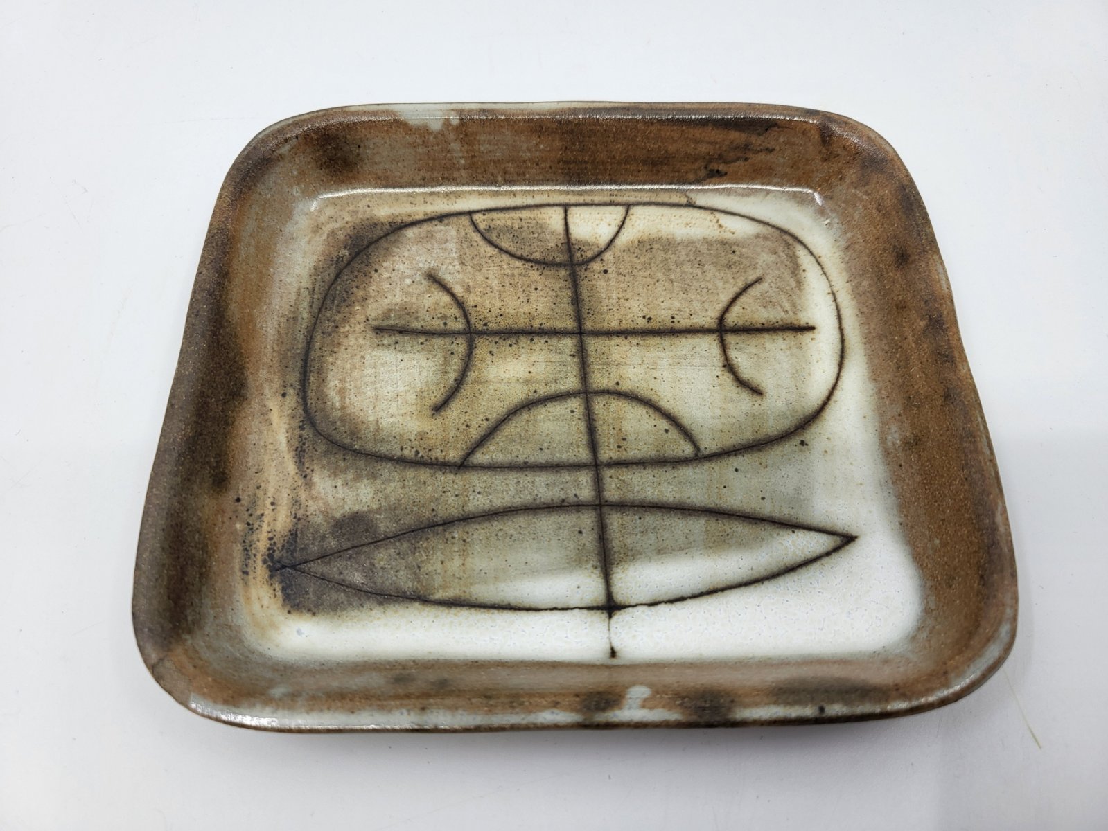 This easily recognizable Atelier Dieulefit trinket tray by Jacques Pouchain, made of glazed stoneware with abstract motifs, was produced in the 1950s. with its unique shape and vibrant colors, this piece stands out among other works of the period, truly embodying the essence of the artistic movement of its time. The subtly nuanced glaze evokes a relevant emotion and invites contemplation, prompting viewers to appreciate not only the aesthetic beauty but also the depth of human creativity that shaped this exceptional piece.