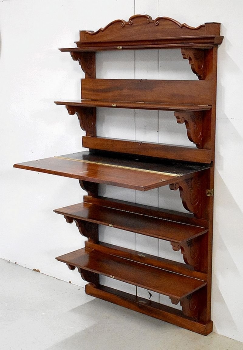 Atypical shelf - wall secretary - designed entirely in solid mahogany at the end of the 19th century.